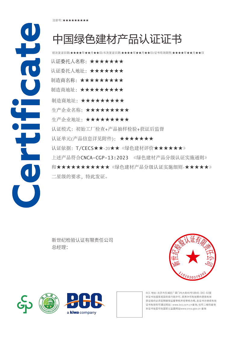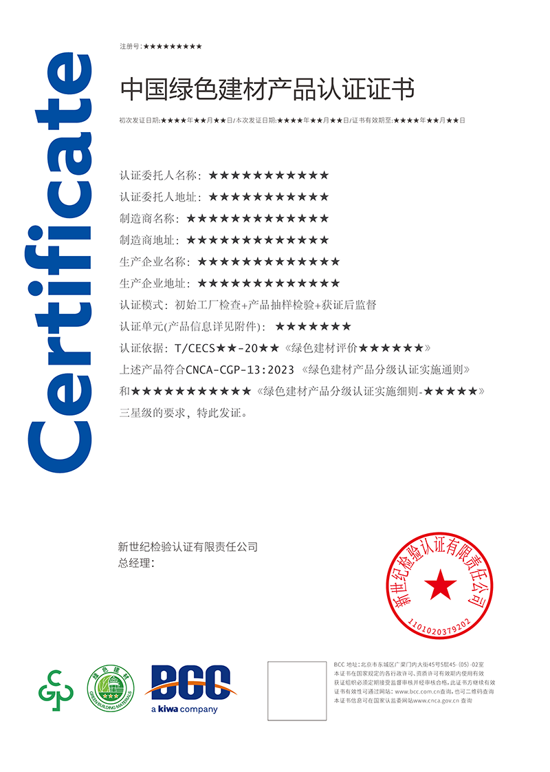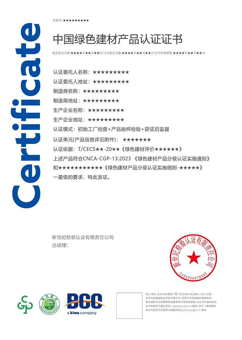 綠色建材產(chǎn)品分級認證按照中國工程建設(shè)標(biāo)準(zhǔn)化協(xié)會發(fā)布的《綠色建材評價標(biāo)準(zhǔn)的要求》,將認證結(jié)果由低至高分為一星級、二星級和三星級。