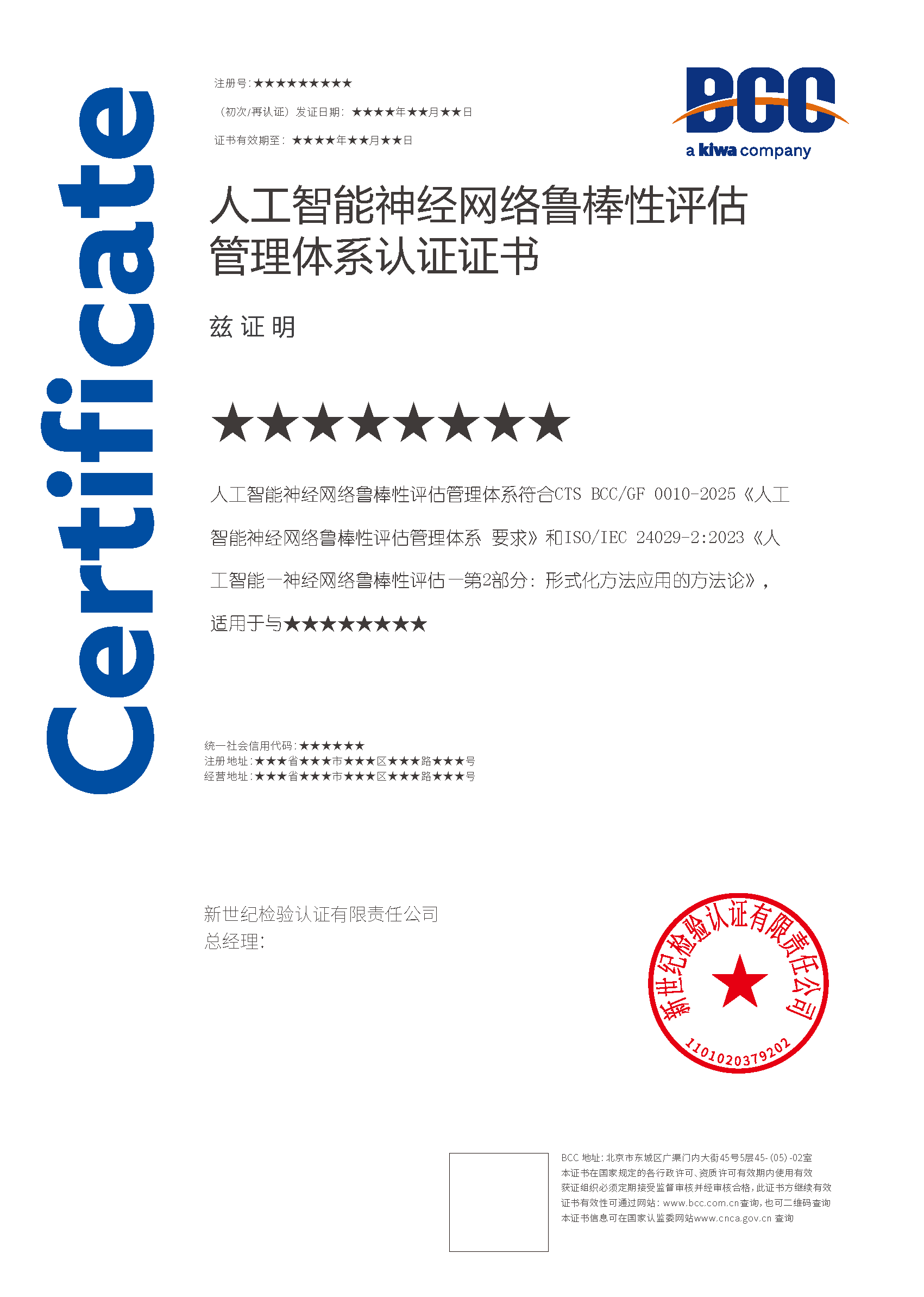 本頁(yè)涉及的認(rèn)證服務(wù)中均有對(duì)應(yīng)的《認(rèn)證實(shí)施規(guī)則》,BCC擁有其最終解釋權(quán)。任何組織及個(gè)人未經(jīng)BCC許可,不得以任何形式全部或部分使用(法律要求除外)認(rèn)證相關(guān)信息。如需獲取相關(guān)實(shí)施規(guī)則請(qǐng)用以下方式聯(lián)系獲取:電話:010-58579316 郵箱:fwjs@kiwa.cn