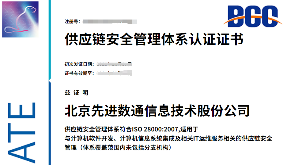 2023年11月,Kiwa BCC派出審核組,對北京先進(jìn)數(shù)通信息技術(shù)股份公司(以下簡稱“先進(jìn)數(shù)通”)實(shí)施了ISO 28000供應(yīng)鏈安全管理體系審核。