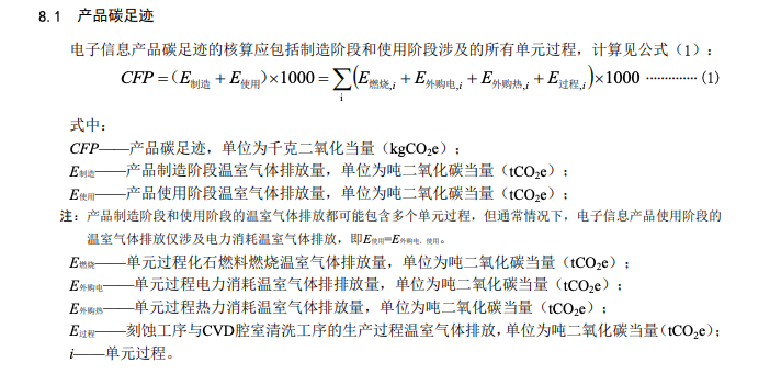 《電子信息產(chǎn)品碳足跡核算指南》規(guī)范了電子信息產(chǎn)品碳足跡核算的目標、核算范圍、功能單位、系統(tǒng)邊界、數(shù)據(jù)收集與處理、核算、報告等內容,并在附錄中給出了相關參數(shù)推薦值以及電子信息產(chǎn)品碳足跡核算的報告及示例等。
